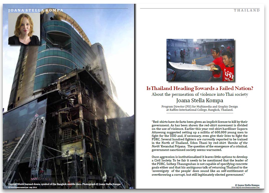 for the May Issue of ‘Live Encounters’ I have published an article with the title ‘Is Thailand heading Towards a Failed Nation?’ which can be found here. You can also locate it in the magazine’s PDF version. I found the topic exciting enough to add the post-scriptum below. Special thanks go to Mark Ulyseas for inviting me as an author.
